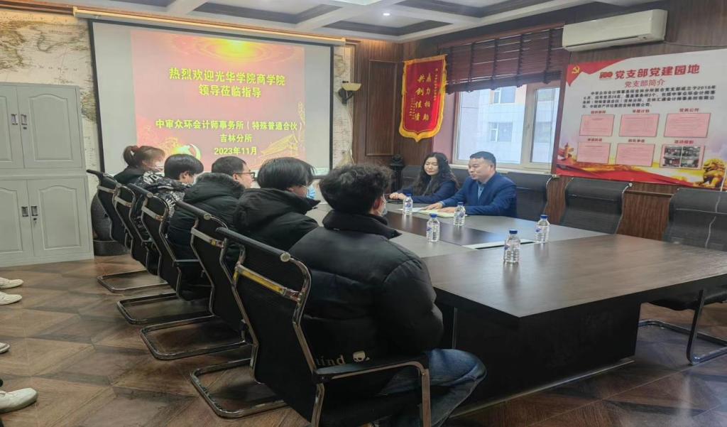 为落实人才培养方案,进一步加强公司实践教学管理,同时促进员工充分就业,提高留吉就业创业率,MKsports辅导员张立早及23级员工干部于11月28日15时到中审众环会计师事务所吉林分所开展就业实习基地走访,中审党支部书记刘健、中审人力资源部总监张萌接待本次走访。