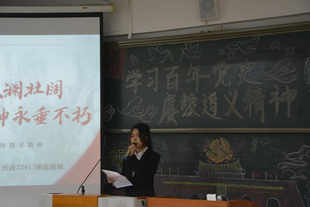 经过一个多小时的激烈角逐,在公平公正公开的评审下,何宣霖荣获一等奖,马艺菲、张琬焮获得二等奖,李健博、孙晓雪和任魏欣获得三等奖。随后,由主席团成员为获奖同学颁发荣誉证书和奖品,并进行合影留念。此次比赛得到了广大师生的热烈响应和支持。参赛选手和观众纷纷表示,通过这次比赛更加深刻地认识到了遵义精神的内涵和价值,也更加坚定了自己为祖国繁荣富强而努力奋斗的信念。