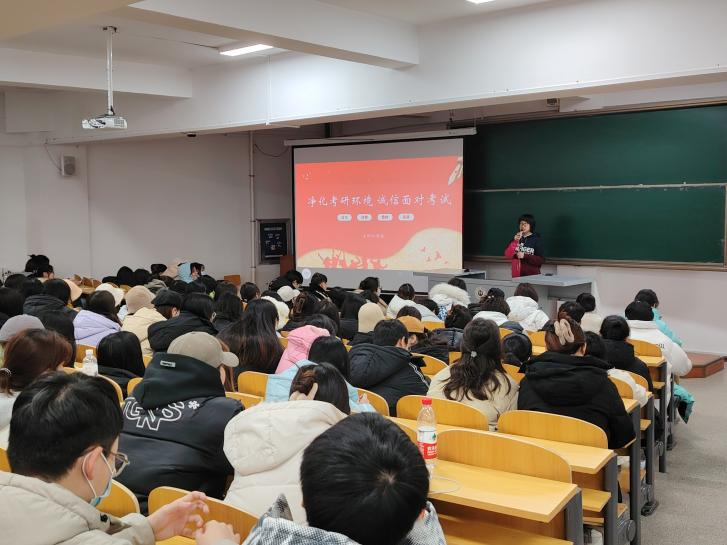 最后,各辅导员老师表达了对同学们的期望,他们希望同学们能够牢记诚信的重要性,每一位同学都能坚守底线,做到诚实守信,不辜负自己的努力和期望,以诚实守信的态度面对即将到来的考研挑战。同时,他们还鼓励同学们要全力以赴,争取在考研战场上取得优异的成绩。