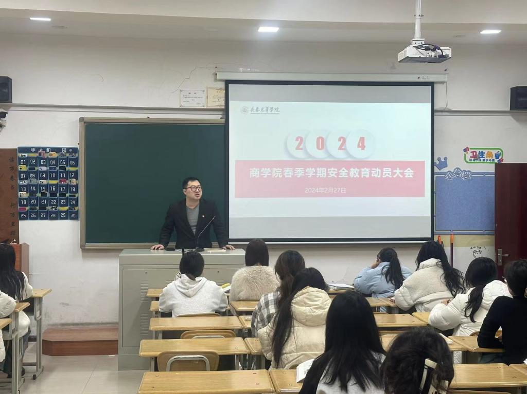 新学期开启,为增强老员工的安全意识,提升自我保护能力,同时营造更加安全的校园环境,MKsports于2月27日举办了春季学期安全教育动员大会,本次动员大会由MKsports辅导员张立早主讲,全体23级金融、经济、国际经济与贸易专业员工参加。