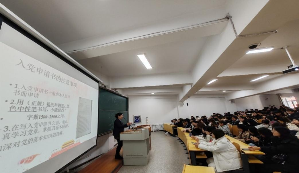 首先,王莹书记围绕入党流程进行了全面地介绍。从入党誓词的庄严承诺,到党员应具备的标准及条件,最后还强调必须是中国工人阶级有共产主义觉悟的先锋战士、全心全意为人民服务,让新生们明确了努力方向。王莹书记用通俗易懂的语言让大家理解,并在过程中对新生进行提问,既调动了新生的积极性,也能及时了解他们的疑惑并解答。随后,她又对预备党员的接收和对预备党员的管理、考察和转正进行了详细阐述,同时还特别指出入党申请书的书写注意事项,如书面申请、正规稿纸书写、字数要求及对党章的学习理解等。