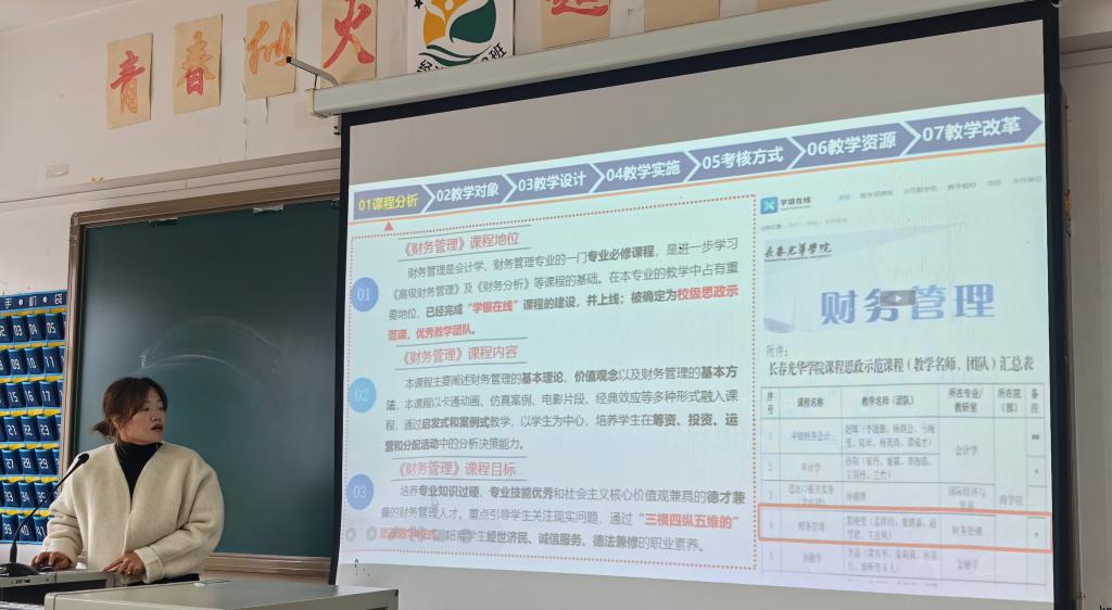 财务管理专业共有五位老师进行了四门课程的说课,分别是王吉凤老师的《管理会计》、孟祥玲老师的《税法》、郭艳莹老师的《财务管理》、窦婧嘉老师的《税法》、吴尧老师的《大数据财务分析与决策》。