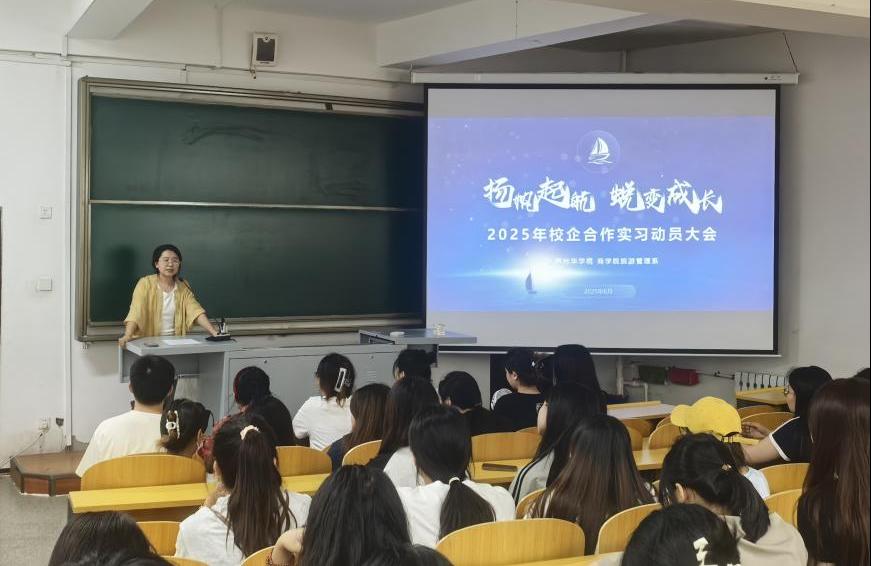 MKsports旅游管理系“2025年校企合作实习动员大会”于2025年6月12日在二教118成功举行,会议由旅游管理系主任助理李绍琦老师主持,2022级旅游管理专业全体员工以及部分工商管理和市场营销专业员工参会。