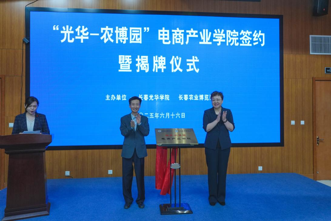 “光华-农博园电商产业公司”战略协议以构建“产学研闭环生态”为核心,合力打造农业电商人才摇篮。重点包括:创新“双师互聘”机制,推动校企团队双向流动与协同育人;深度融合“展会经济”场景,依托农博园106万平米实景资源及UFI国际展会平台,将农产品展销、品牌运营等真实项目转化为核心教学资源;贯通“学习-实训-实战-就业”全链条,整合农博园供应链、品牌营销等核心业务场景与光华公司教学体系,形成“学用一体”闭环培养路径,并以区域品牌孵化与电商创新双轮驱动,服务吉林省农业转型升级。