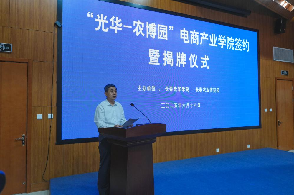 仪式上,李晓光董事长在致辞中深刻阐释了合作的时代意义。他指出,当前培养适应现代产业需求的高素质应用型人才是高等教育支撑经济发展的必然要求。光华公司作为拥有7大学科门类、44个本科专业的综合性高校,始终走在产教融合前沿,尤其在电子商务领域建有省级重点研究基地,发起成立省级电商学会,积累深厚资源。农博园则是国家级农业科技园区,在技术推广和产业资源整合上独具优势。“双方将高校智力资源与农博园产业资源深度融合,不仅是对吉林省‘三农’发展的精准回应,更是探索电商助农新路径的战略起点。”