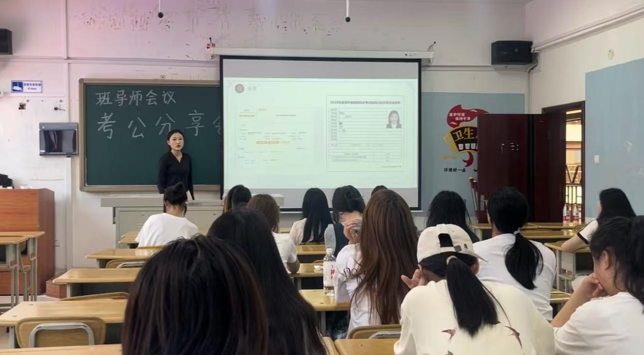 在分享方面,孟欣如同学说明了公考环节中,笔试就是考验智商的一个环节,面试考验情商,体检检查身体健康,最后到达政审对政治素养及家庭进行审查。介绍了在国考中笔试与面试的占比为5:5,吉林省考中笔试与面试的占比为6:4的相应信息。