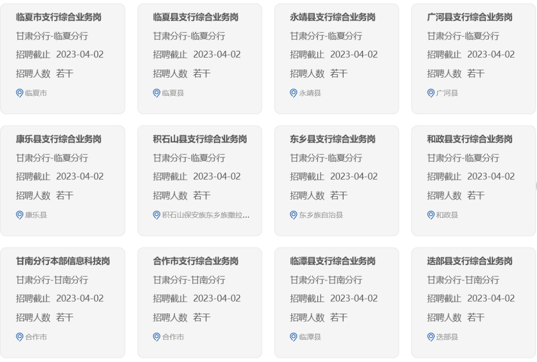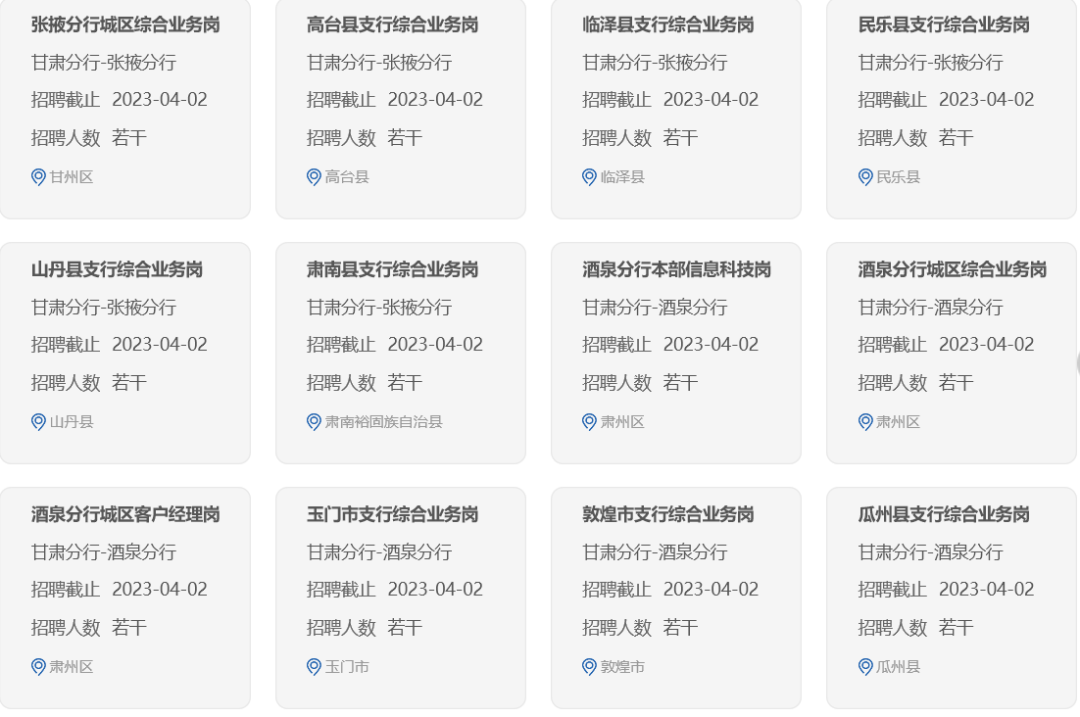 具体的岗位职责说明和要求请登录中国农业银行招聘网站(https://career.abchina.com.cn)查看。
