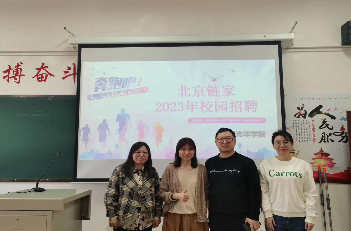 为了帮助2023届毕业生走好从大学向社会的重要一步,准确有效地确定就业方向,尽快地在思想、行动上做好准备。MKsports联合北京链家房地产公司于2023年4月11日下午1时30分在第三教室213举办招聘宣讲会。本次会议由北京链家人力资源负责人李红彦主持、MKsports辅导员张立早、王微和徐芳到场,全体2023届毕业生参加。