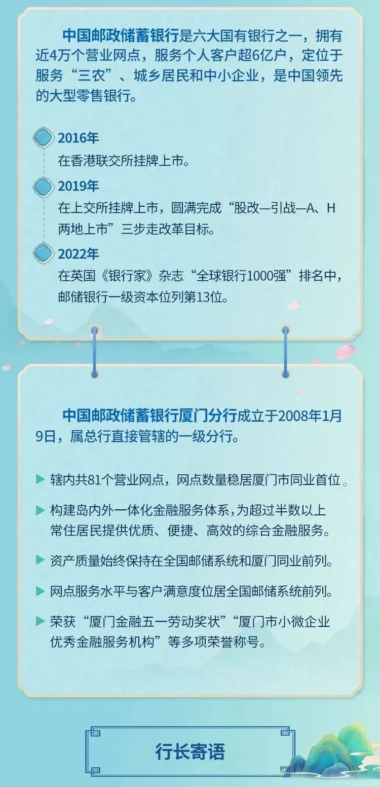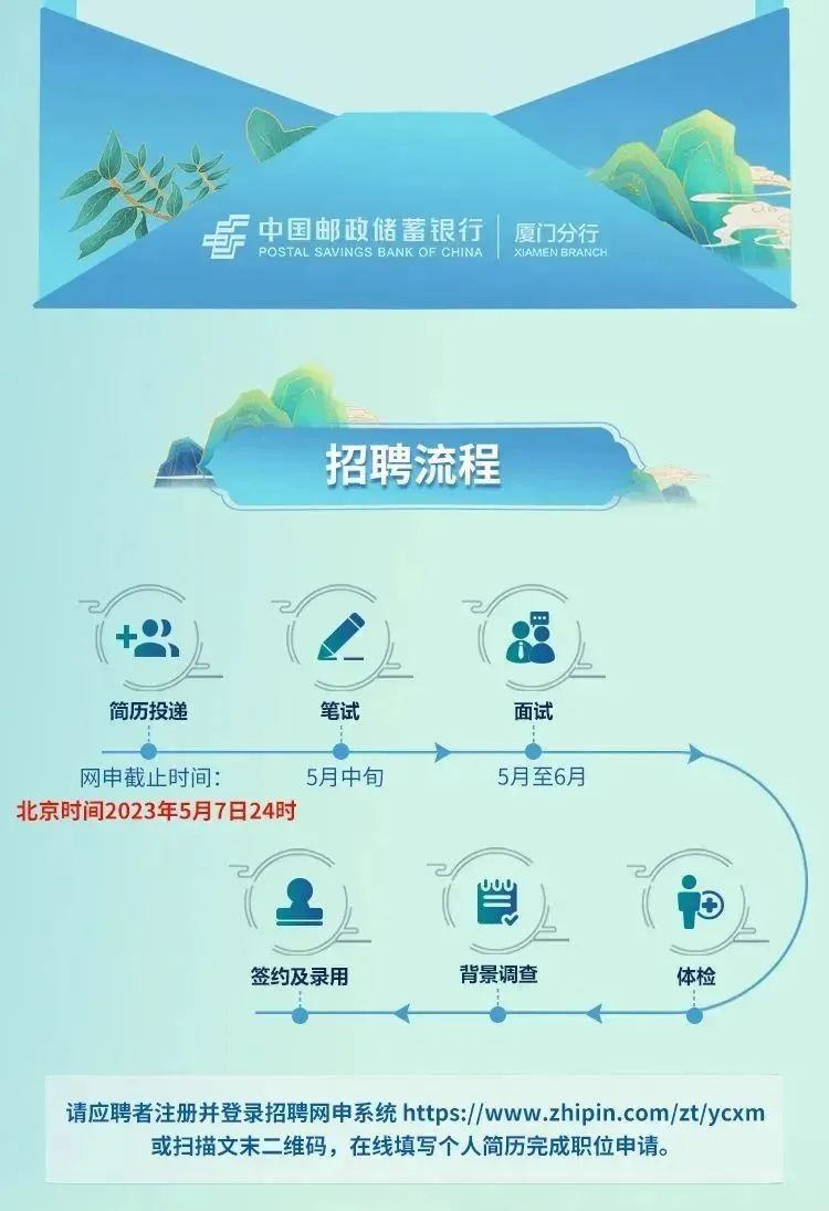 招聘信息 | 中国邮政储蓄银行厦门分行2023年春季校园招聘
