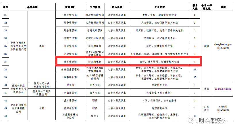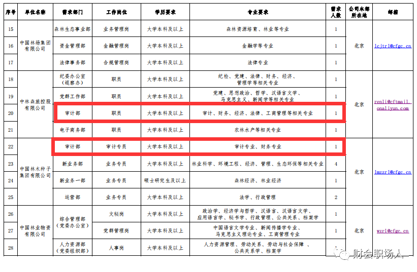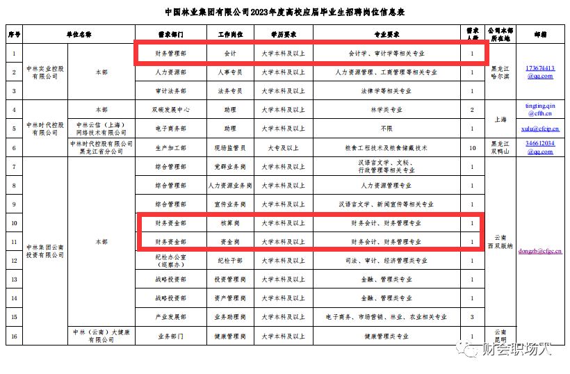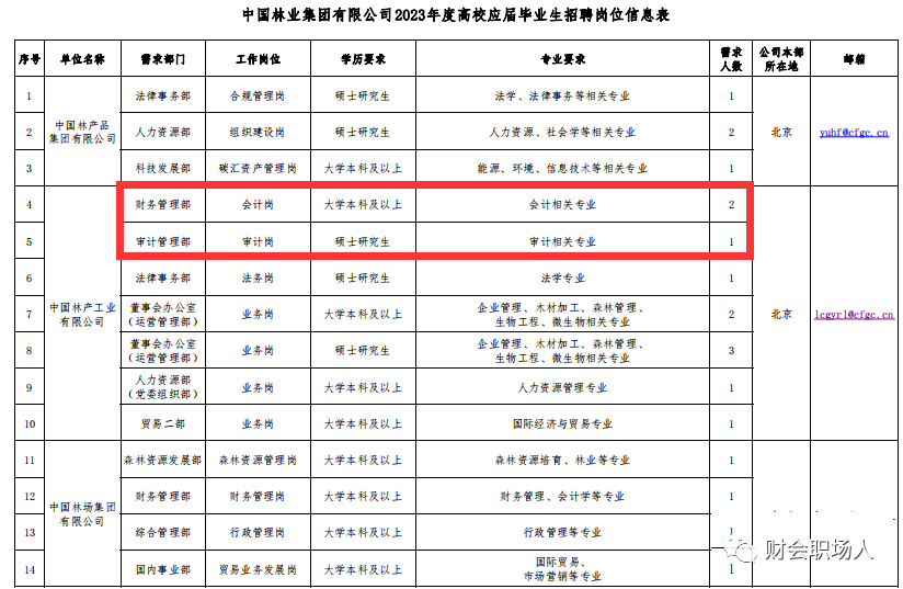 招聘单位及岗位信息详见《中国林业集团有限公司2023年度高校应届毕业生招聘岗位信息表》(附件1)。
