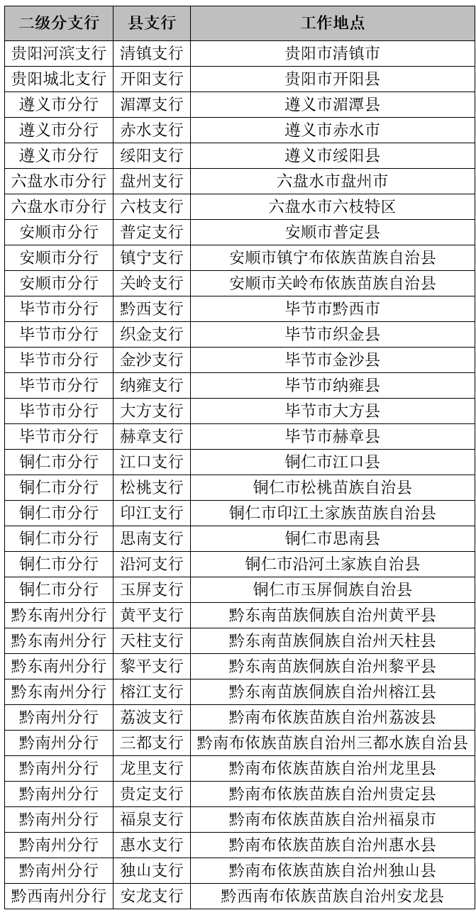 贵州省分行认真贯彻落实党中央、国务院各项重大战略决策部署和省委省政府工作要求,因地制宜,积极抢抓新国发2号文政策机遇,以新金融行动深度对接贵州省乡村振兴、大数据、大生态“三大战略行动”,主动服务贵州围绕“四新”主攻“四化”的主战略,大力推进新金融理念在贵州省县域机构落地生根,聚焦县城、乡村和城乡联动融合发展,加大人力资源、财务资源匹配和业务支持,增强行政县支行市场竞争力,将其努力打造成培育我行“第二发展曲线”、实施“三大战略”的崭新增长点。