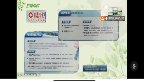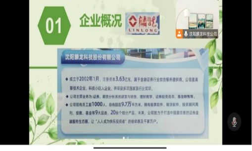 会议伊始,主持人对到场员工表示了欢迎。随后,人事人员就沈阳麟龙科技公司的关于我们、主营业务、工作环境以及岗位需求等多方面介绍了企业的具体信息,并表示企业愿意接纳多方优秀人才,吸引更多的优秀员工到此参与实习。沈阳麟龙科技公司人事介绍表示,沈阳麟龙科技股份有限公司是高新技术企业,科技小巨人企业,并荣获多项国家及行业奖项。公司主营业务为证券、期货分析系统研发与销售、理财教学、证券投资咨询、基金销售等。未来,沈阳麟龙科技公司致力于打造中国最完善的证券金融服务生态圈,让“人人成为快乐投资者”的使命惠及千家万户。公司目前主要招聘网络营销实习生等岗位。紧接着,公司招聘负责人建立了招聘信息发布群聊,以便后续的招聘工作顺利开展。人事人员热情地为同学们解答了诸多相关问题,同时也表示,与公司方面的对接为企业输送了不少人才,在今后的工作中,将致力于建立多方校企合作平台,实现互利共赢。