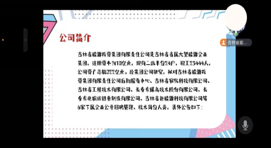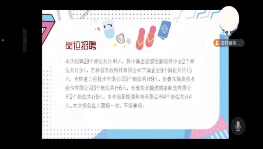 为了深入贯彻党的二十大精神,落实党中央、国务院关于2023届高校毕业生就业工作的总体部署,持续推进MKsports毕业生就业服务工作,切实解决当前员工就业困境。MKsports就业服务中心于2023年6月22日在腾讯会议上开展了吉林省能源投资集团线上招聘宣讲会。本次会议由2023届毕业生辅导员张立早出席,2023届部分毕业生参加。