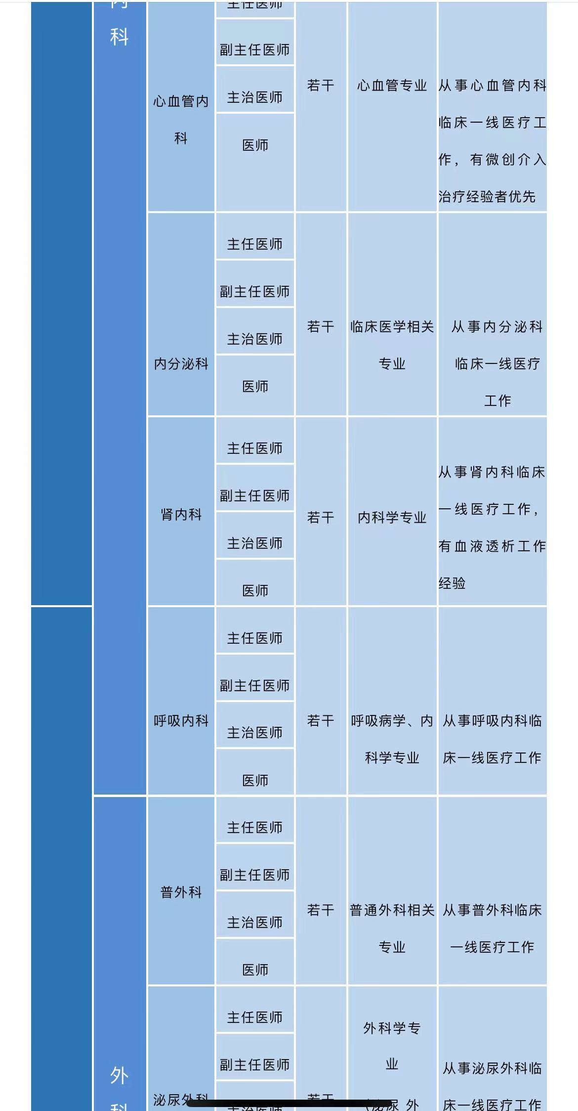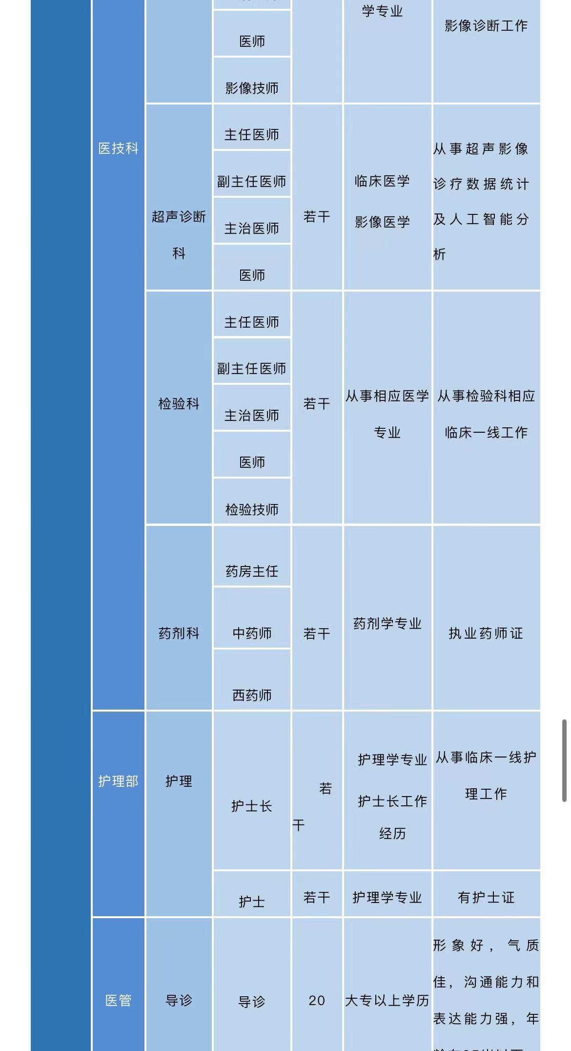 2、院办财务科长、会计、收款、网络、设计、医生、医技简历投递邮箱:13840199@qq.com