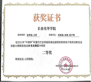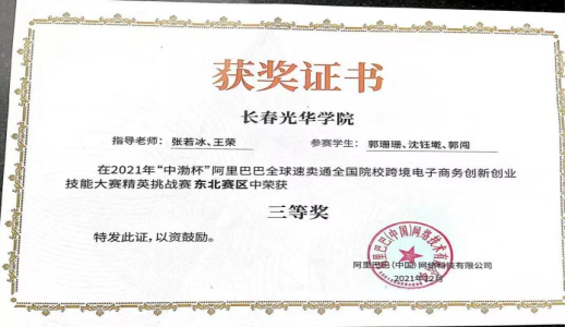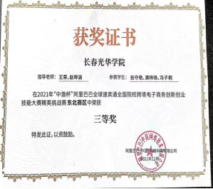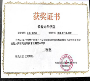 公司国际经济与贸易专业在2021年“中渤杯”阿里巴巴全球速卖通全国院校跨境电子商务创新创业技能大赛中获东北赛区一等奖1项,二等奖4项,三等奖2项