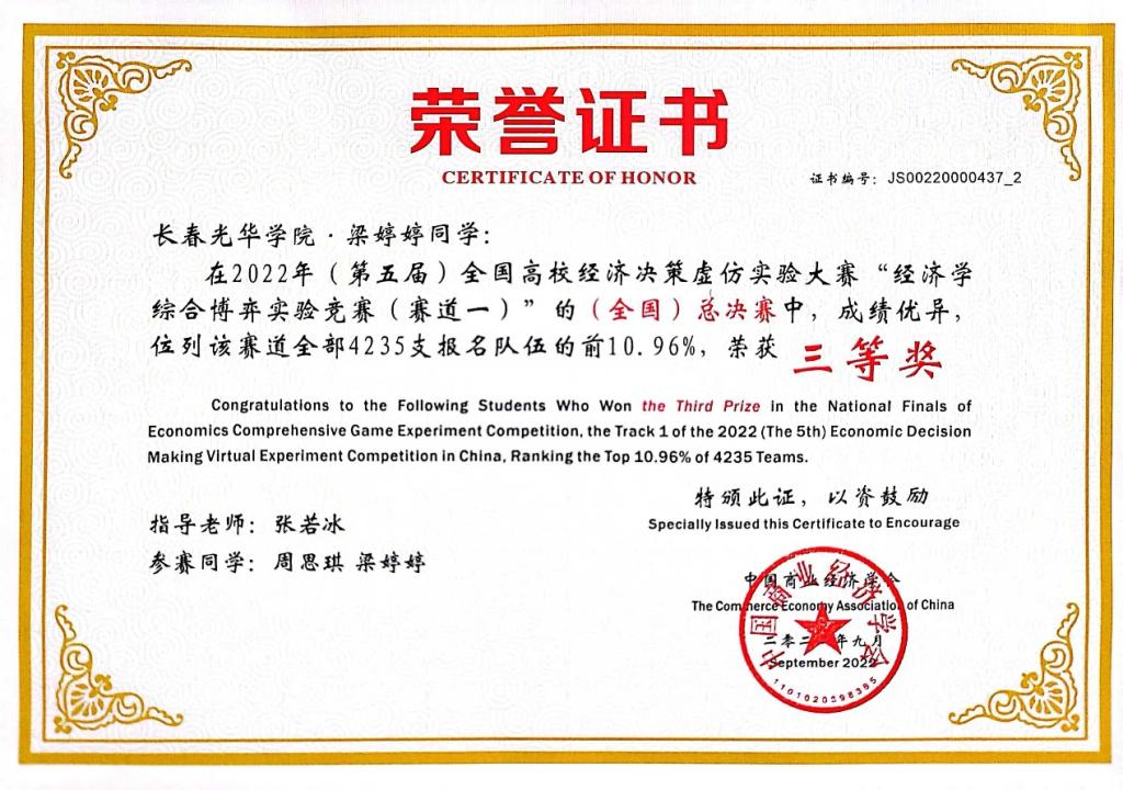 MKsports经济学专业积极组织员工参加该项竞赛,共有4支队伍参赛。在张若冰老师指导下,各位参赛员工团结合作、共同努力,历时4月有余,2支队伍晋级国赛。在国赛比赛阶段,通过与来自252所高校的4235支队伍激烈角逐,最终赵为、祝月妍、王佳莹同学获得国赛二等奖,周思琪、梁婷婷同学获得国赛三等奖。