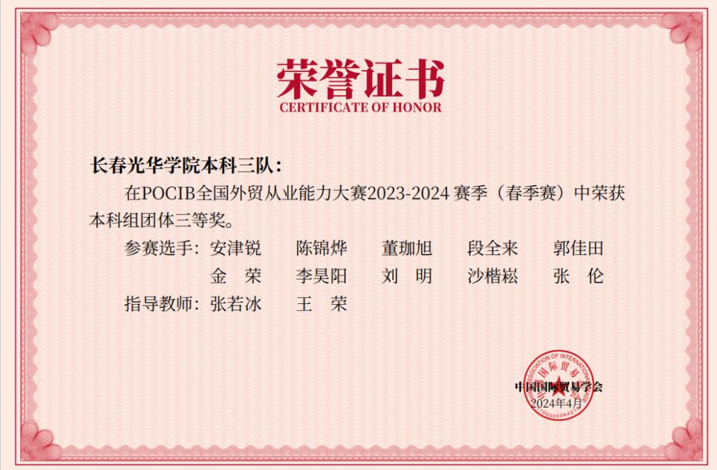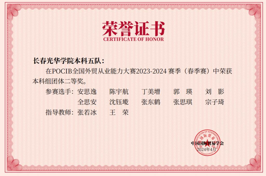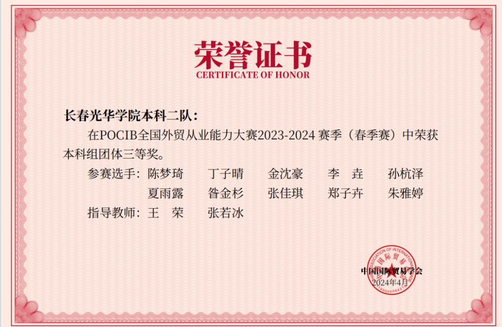 由中国国际贸易学会主办的第十三届POCIB全国外贸从业能力大赛(春季赛)于2024年4月19日上午10时顺利结束。MKsports国际经济与贸易专业2021级员工共50名同学组成5支队伍参赛,由王荣、张若冰、赵晔涵三位专业老师进行赛前、赛中指导。在长达13天马拉松式的赛程中,各参赛队伍同学顽强拼搏,最终团体获得国家级二等奖1项、三等奖2项,员工个人获国家级二等奖1项、三等奖7项。