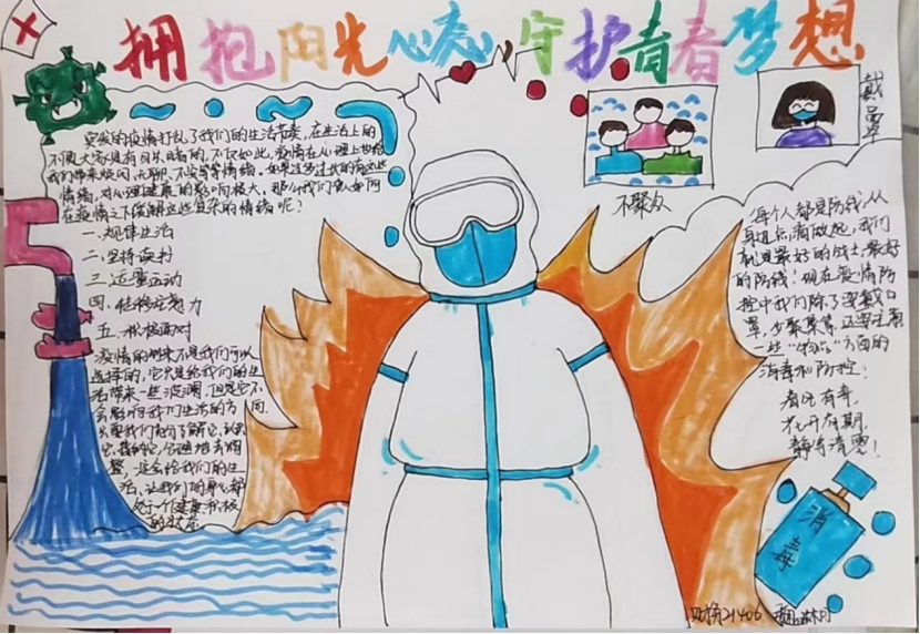 此次活动中,需要同学们自己查找有关心理健康的知识、宣传资料等,并以手抄报的形式呈现出来,把所思所想,借助手中的画笔描绘出来,让更多的人看到,向同学们传播正向的心灵能量,共同营造和谐的校园和心理文化氛围。