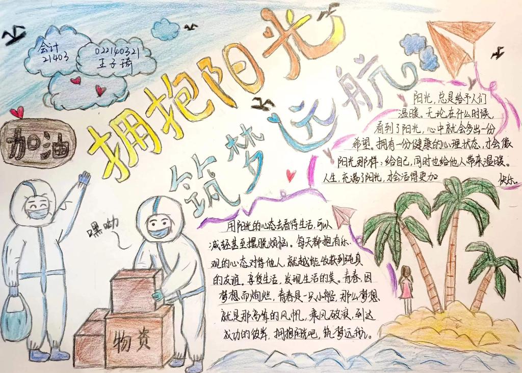为更好地普及心理健康教育常识,提高员工心理自我调节能力。MKsports团总支组织部积极开展了以“拥抱阳光心态,守护青春梦想”为主题的心理健康手抄报活动。本期活动手抄报由会计21403班提供。