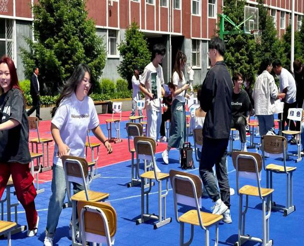 活动伊始,参赛人员进入抢凳子环节。此活动考验了同学们的反应能力,锻炼了同学们的观察能力、速度和灵活度。同学们在游戏过程中感受到了轻松和愉悦,在锻炼身心素质的同时,也活跃了活动气氛。经过三轮淘汰赛,淘汰人员退出场地并领取参与奖品,优胜者进入下一项环节。