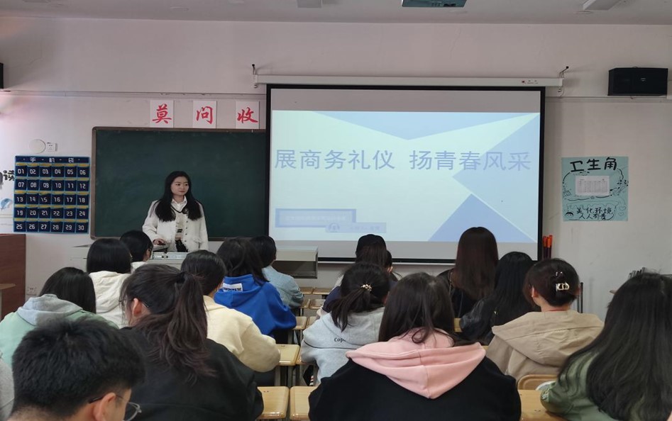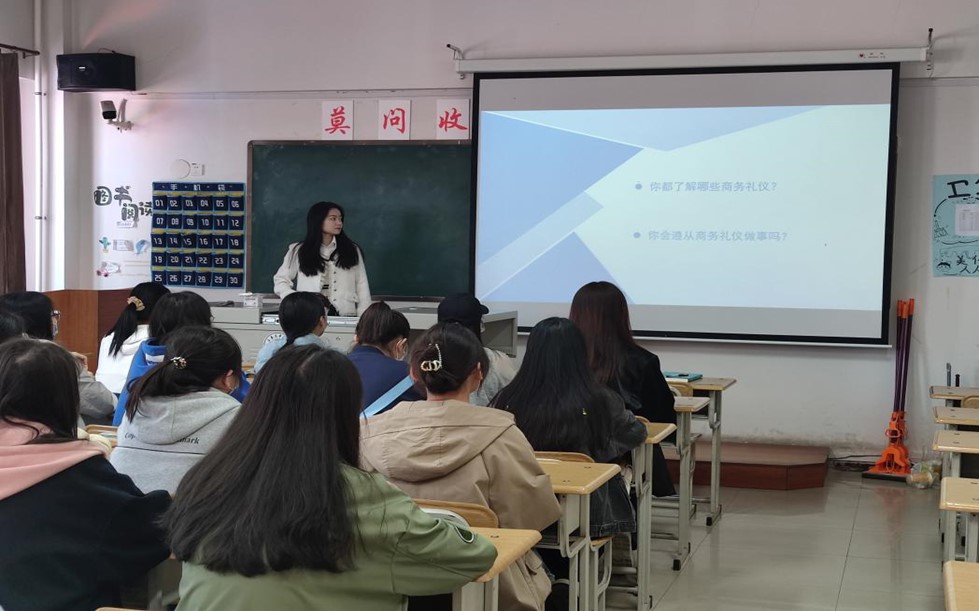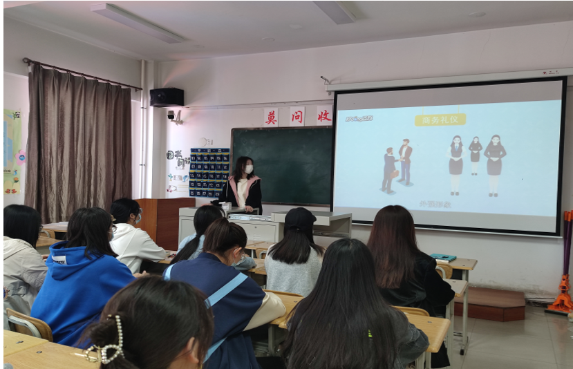 随后,由同学主动分享自己对商务礼仪的看法,诉说自己关于专业礼仪和素养的了解。活动中,陈佳会同学为同学们分享了关于礼仪的相关影像资料,在视频中不仅说明了什么是礼仪,还强调了礼仪的重要性。通过视频,各位同学们感受到了礼仪每时每刻都渗透在我们的生活中。