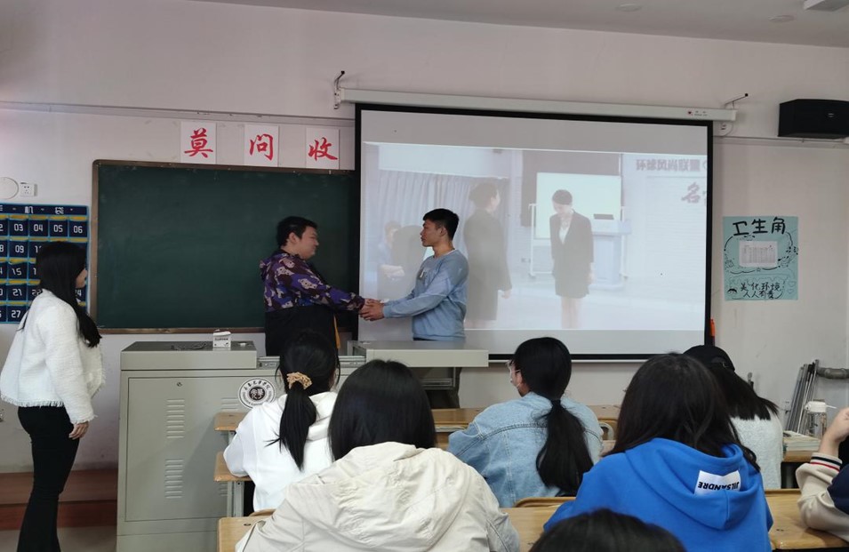 最后,由同学们根据自身所了解的商务礼仪进行现场展示,现场的同学判断他们的表演是否符合正确的礼仪规范。通过现场生动有趣的表演,同学们也更深层次地注意到礼仪的重要性。
