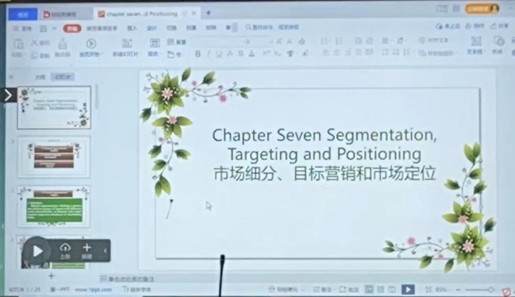 随后,主持人展示教师备课制作的课件,作为优秀分享。其中王荣老师结合《国际营销》课本教材的实际情况以及自身对教学内容的理解,对教学目标选定、教学内容规整、教学环节设计、如何有效突破教学重难点、如何凝练课程营销元素等不同内容进行了介绍与分享,并将课件的个性化设计落到实处。整个课件展示教学理念先进,教学环节环环紧扣、层层递进。活动最后,老师就同学们提出的关于PPT课件的问题,进行了细致耐心地解答,解决了同学们对问题的迷茫。至此,本次活动完美地落下了帷幕。