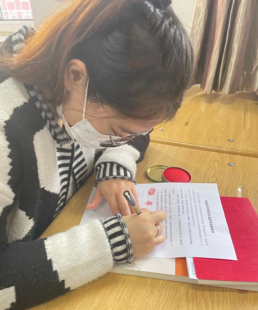 宣讲会最后,各班学委组织同学们在《诚信应考承诺书》上庄重的签下自己的名字并摁上手印。签订这份承诺书旨在强化同学们的自律意识,了解公司考试具体要求,使其端正考试态度,增强对考试作弊严重性的认识,营造公平的考试环境。