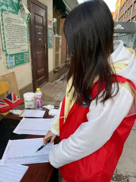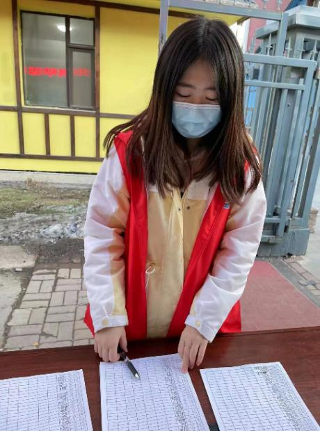 疫情防控从来不是一个人的单枪匹马,是一群人的众志成城。作为一名疫情防控志愿者,王洲洋同志也负责公寓前的检查出行工作,让校园更加有序严谨。她尽己所能,倾己全力,为疫情早日结束献出自己的全部力量。