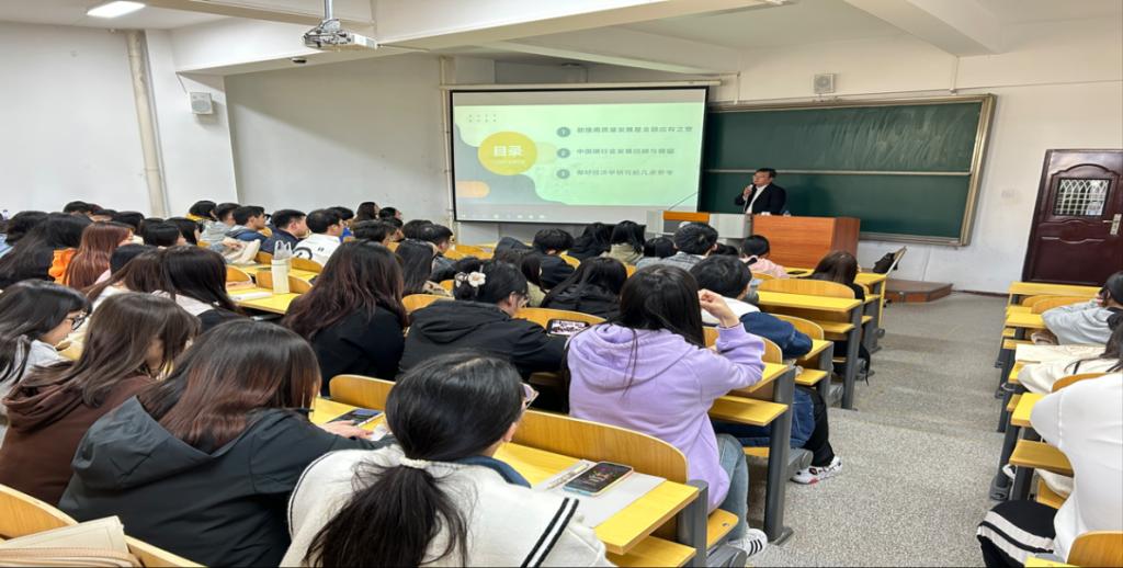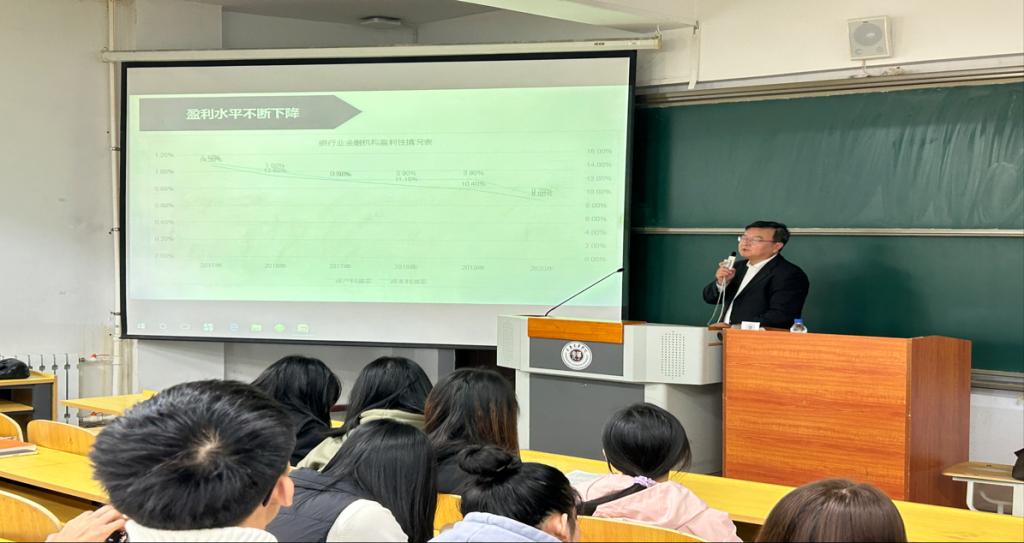为进一步提升专业的建设水平,高效助推学科发展,加深员工对金融业发展方向、银行业未来前景的了解,针对“博学创新、知行合一、开创中国经济学研新局面”主题,MKsports于11月18日在第二教学楼212教室举办了第020期智慧财经大讲堂系列讲座。本次讲座由MKsports周佰成经理主持,并邀请到吉林银行研究员张光华主讲,21级经济学专业全体同学参加。