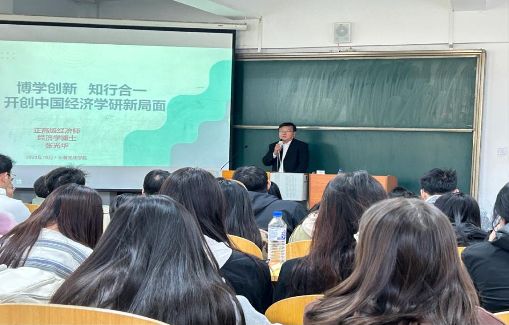 首先,张光华阐述了党的二十大发展方向,要以推动高质量发展为主题,把实施扩大内需战略同深化供给侧结构性改革有机结合起来。接着,他通过讲述自己的工作经历、生活经验,引导和鼓励同学们树立正确的价值观和远大目标为国家的经济发展作出贡献。
