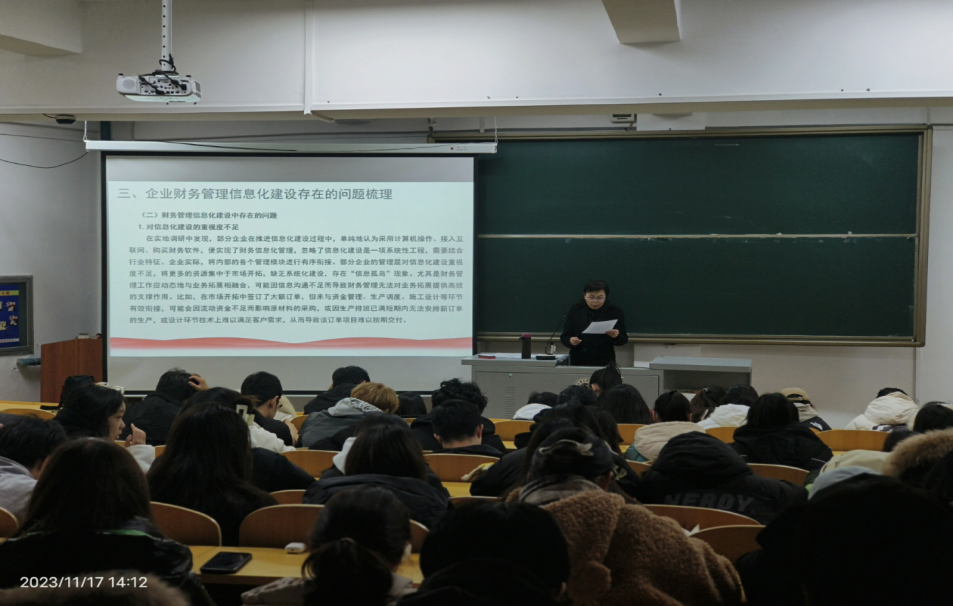 为适应现代商业社会的需求,拓宽财会类专业员工的信息化视野,了解财务管理信息化的重要性,MKsports于11月17日在第二教学楼116教室开展了主题为“业财融合背景下企业财务管理信息化建设研究”的专题学术报告讲座,本次讲座由财务管理系教授王吉凤主讲,2021级财务管理专业和2022级会计学专业的全体员工参加。