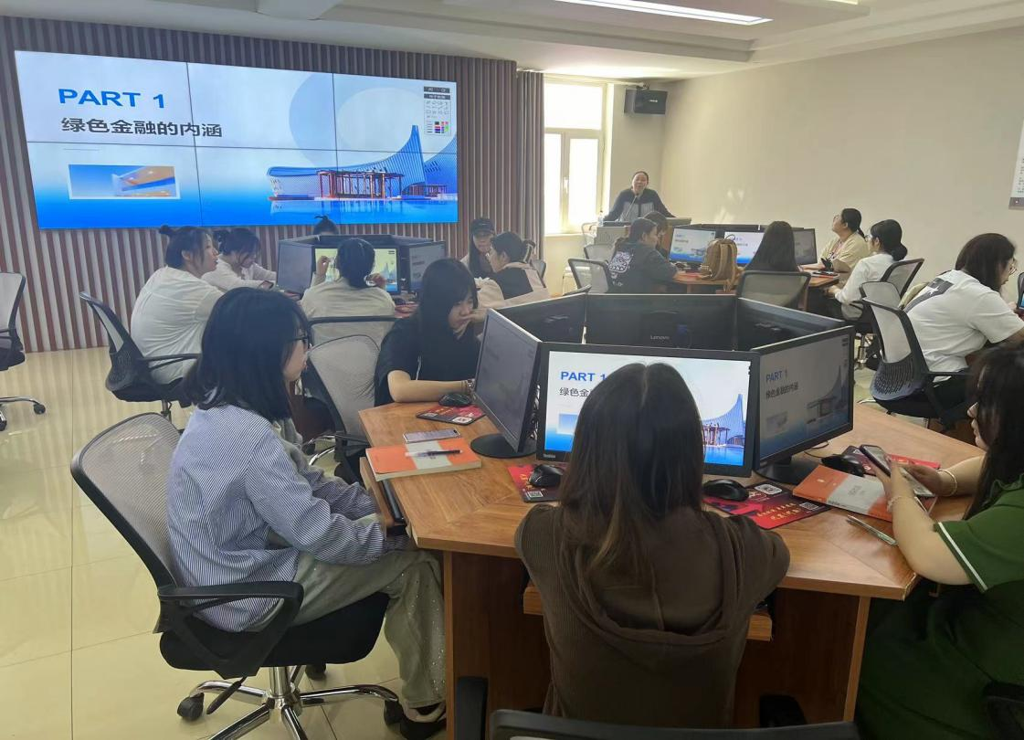 首先,赵畅教授首先向员工们介绍了绿色金融产生的背景及其内涵,即为支持环境改善、应对气候变化和资源节约高效利用,通过对环保、节能、清洁能源、绿色交通、绿色建筑等领域进行项目投融资、项目运营、风险管理等所提供的金融服务。